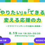 【2025年8月19日】「やりたい」を「できる」に変える応援の力〜クラウドファンディングの基本と最前線〜